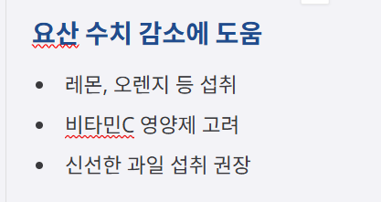 - 비타민C: 비타민C는 요산 수치를 낮추는 데 효과적이라는 연구 결과가 있어요. 비타민C가 풍부한 과일(레몬, 오렌지)이나 영양제를 챙겨 먹는 것이 좋습니다.