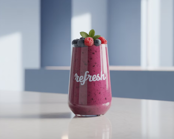 - 재료: 무가당 플레인 요거트 1컵, 냉동 블루베리, 라즈베리 등 베리류 1/2컵, 물 또는 아몬드유 약간.