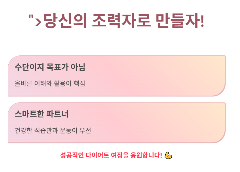 보조제를 단순한 '알약'이 아닌, 당신의 다이어트 여정을 돕는 '스마트한 파트너'로 활용해 보세요.