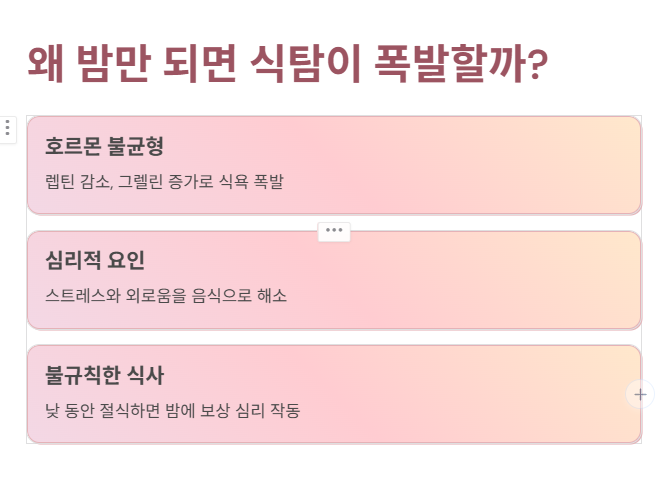 밤에 야식 충동이 강해지는 데는 여러 가지 복합적인 원인이 있습니다.