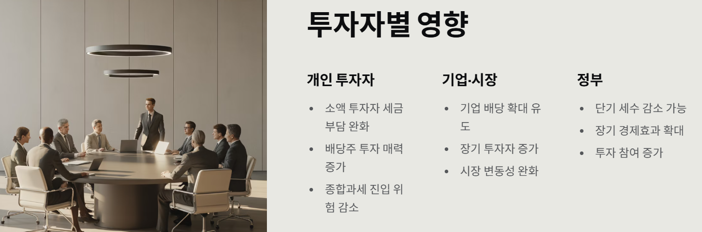 - 기업 배당 확대 유도 가능 - 장기 투자자 증가 - 변동성 완화 기대