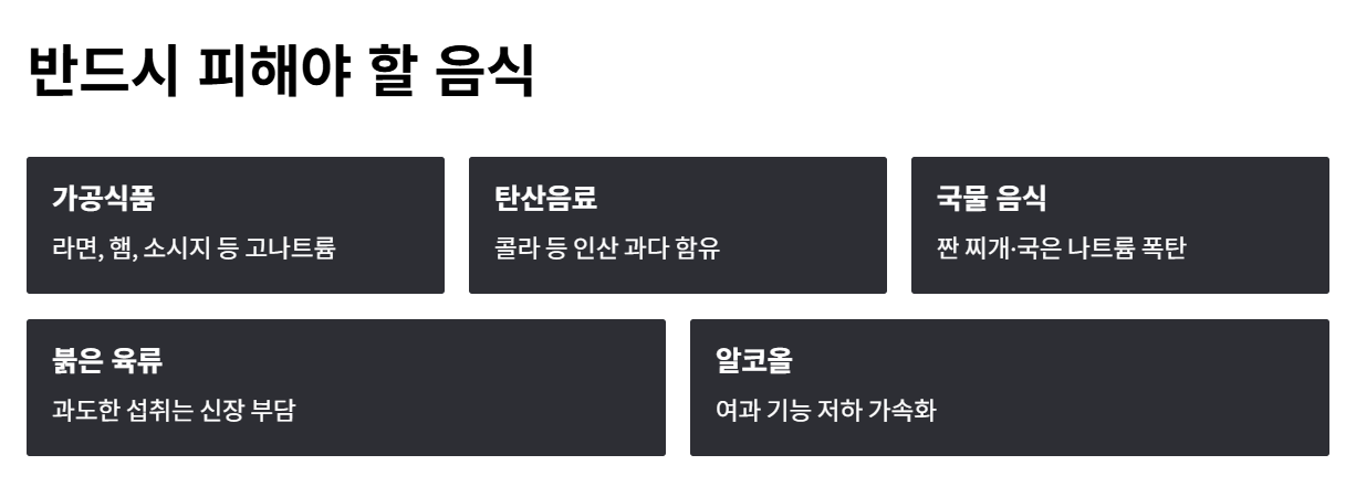 - 라면, 햄, 소시지 같은 고나트륨 가공식품