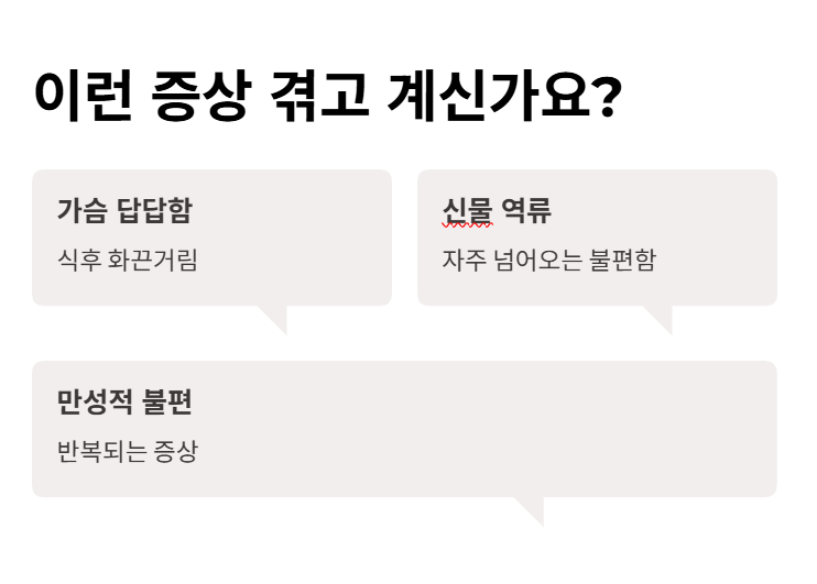 식후에 가슴이 답답하거나 화끈거리고, 신물이 자주 넘어오는 증상 때문에 불편함을 겪고 계신가요?