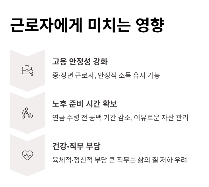 이는 단순히 오래 일하는 사회가 아니라, 지속 가능한 노동 구조로의 전환이라는 점에서 시사하는 바가 큽니다.