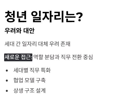 고용시장 전체로 보면 청년 일자리 감소에 대한 우려도 빠지지 않습니다. 그러나 최근에는 세대 간 일자리 대체보다는 역할 분담과 직무 전환을 중심으로 한 새로운 고용 모델이 주목받고 있습니다.
