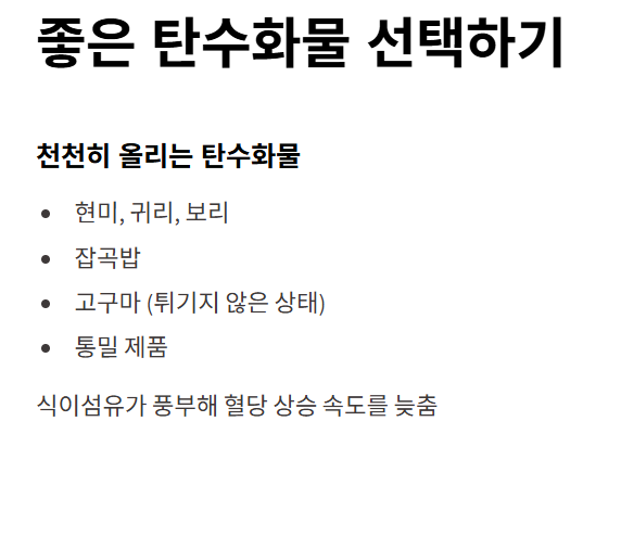 이러한 음식들은 식이섬유가 풍부해 혈당 상승 속도를 늦추고 포만감을 오래 유지해줍니다.