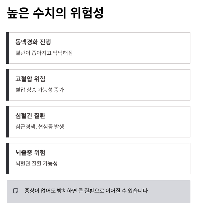 특히 심혈관 질환 병력이 있거나 당뇨, 고혈압을 동반한 경우에는 조기 관리가 중요합니다.