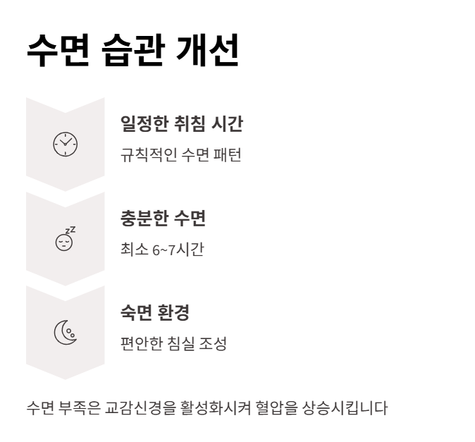 수면 부족은 혈압을 높이는 숨은 원인입니다. 잠을 충분히 자지 못하면 교감신경이 활성화되어 혈압이 올라갑니다.