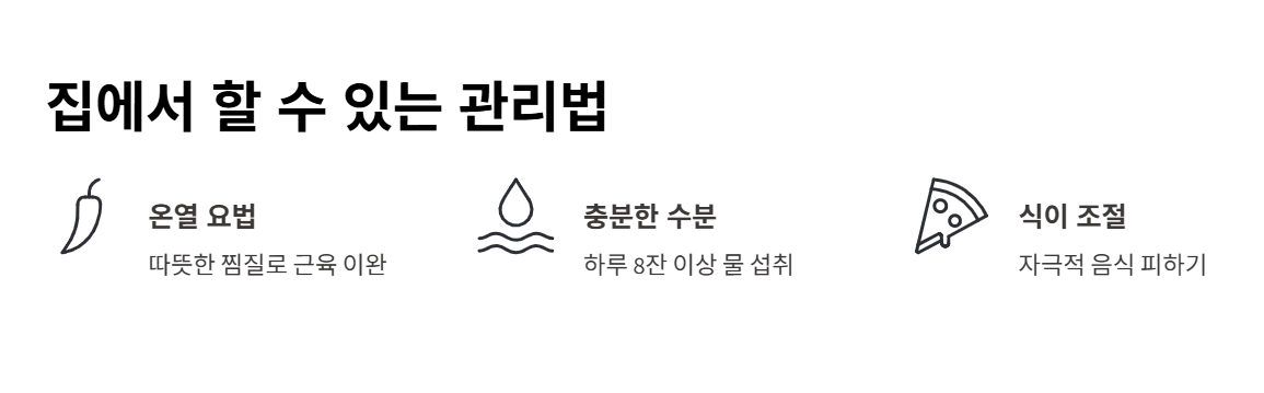하지만 통증이 반복되거나 일상생활에 지장을 준다면 자가 판단보다는 전문의 진료가 가장 안전한 선택입니다.