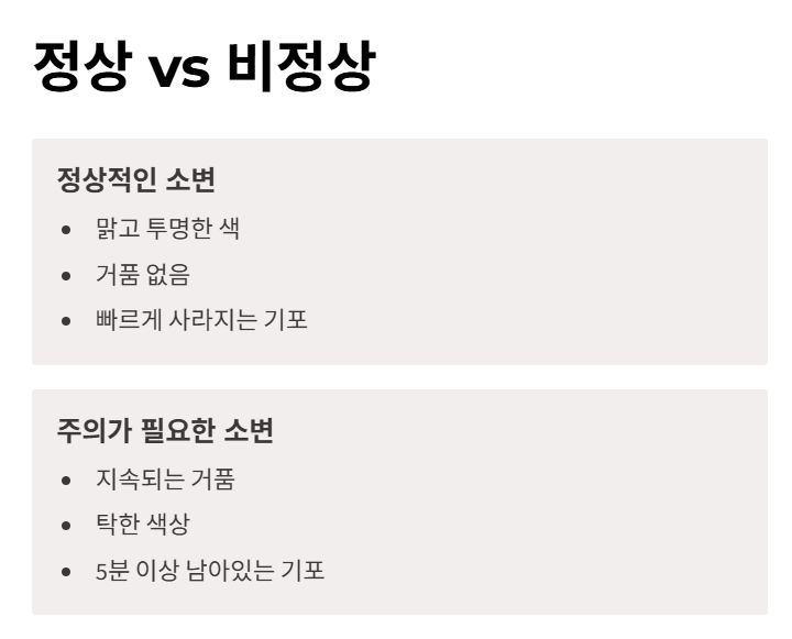 소변 거품만으로 바로 병원을 갈 필요는 없지만, 다음과 같은 증상이 함께 나타난다면 진료를 받아보는 것이 좋습니다.