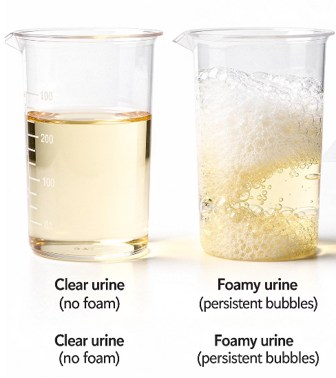 이럴 때 가장 많이 언급되는 것이 바로 단백뇨입니다. 단백뇨는 소변에 단백질이 섞여 나오는 상태를 의미하며, 거품이 비교적 오래 유지되는 특징이 있습니다.
