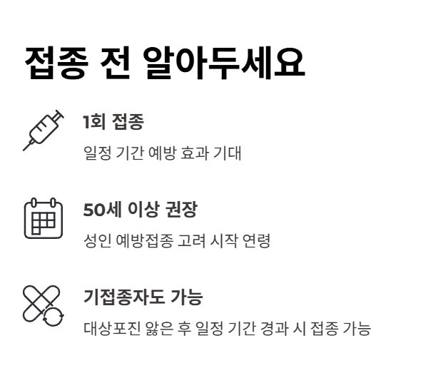 특히 면역력이 약해지는 중장년층과 노년층에서 발생 위험이 높기 때문에 예방접종이 매우 중요합니다.